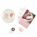 Along with the Rose Quartz gemstone rollerball, this set also comes with a 10ml clear roller bottle adorned with a premium aluminium co-ordinated cap, which is approximately 1/3 full of Rose Quartz gemstone chips. This set is accompanied by an individual instructional card detailing the wellness and emotionally supportive areas that this gemstone can support with suggested essential oils to compliment its use.