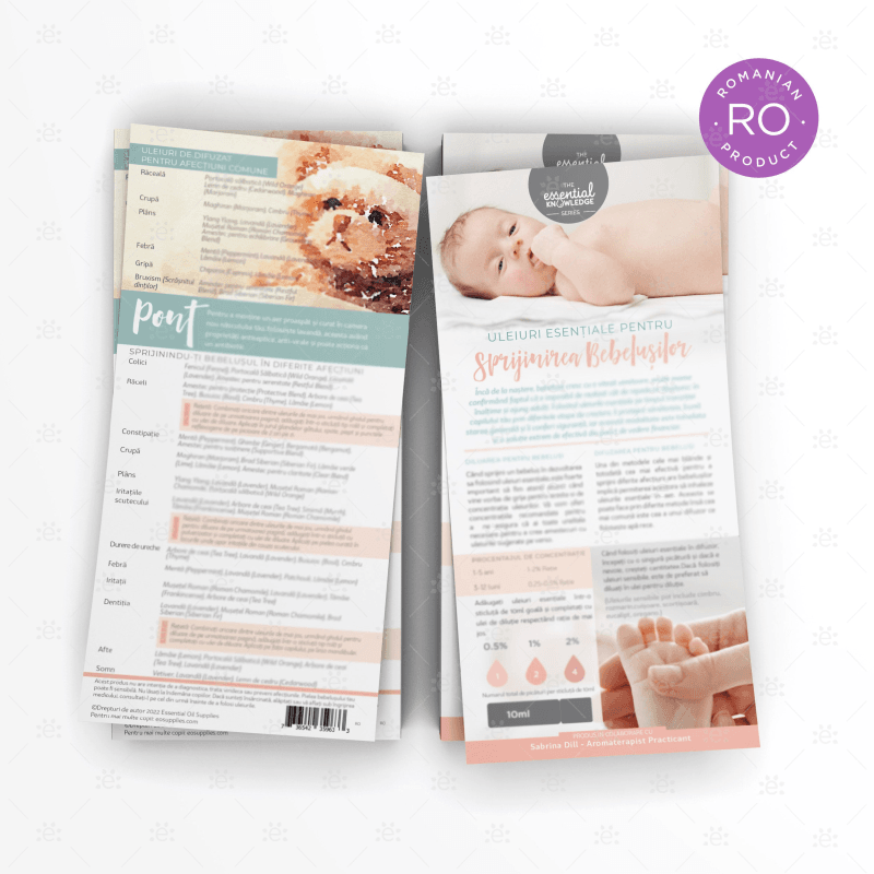 Part of the "Essential Knowledge Series", these ROMANIAN rack cards are an ideal quick reference guide containing suggested essential oils and blends to use for supporting babies with common complaints.