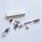 Contents: 10g (enough to part fill 3 x 10ml roller bottles) boxed amethyst gemstone tube