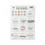 We've created a unique multi use label that you can simply use as suggested in the brochure, or on alternative sized bottles of your choice as you personalise and customise to your requirements. May be you wish to make a half sized bottle as a sample or a room spray. The labels can be trimmed with scissors to fit a variety of bottles as illustrated and indicated on the label sheet. Additional MyMakes Natural Essentials for Babies labels are available for purchase here.