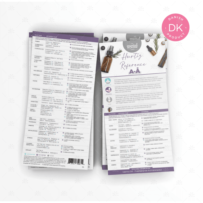 You've come to love the Essential Knowledge Series Materials and now by demand we've created these delightfully designed quick reference A-Z cards as an introduction to how to use essential oils for 50 common ailments - in Danish