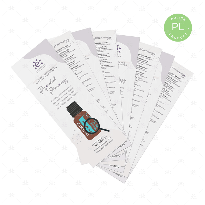 Use this handy bookmark in POLISH, from our Essential Knowledge Series, to quickly match generic blend names with corresponding dōTERRA® essential oil blends.