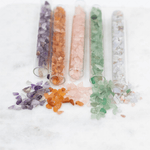 These polished amethyst chips come in a glass tube with a cork top for ease of distributing between your roller, spray for sample vials. These gemstones are small enough to fit a standard 10ml roller bottle opening, you may need to self select to fit inside a sample vial.