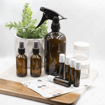 The kit contains a 5 page digital brochure containing all the recipes indicated below along with some others, hints, tips and guidelines for using essential oils, along with the brochure you'll receive a glass spray bottle perfect for creating an all-purpose kitchen spray, roller bottles for those all-important roller recipes, smaller spray bottles for maybe a bedtime pillow spray or hand sanitising spray and some jars for creating a balm or lotion.