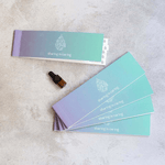 The booklet is delightfully designed to provide that professional edge to the way you present your essential oils. Simply pull the strips from the booklet along the serrated edge and dab oil on the end of the strip. Inscribed with "Inhale Wellness" at the end where you would hold the strip, reminding your customers that every drop inhaled is beneficial.