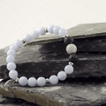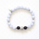 This delightful high quality bracelet is adorned with blue lace agate gemstone beads along with lava beads both with the ability to support and enhance your well-being. The bracelet is elasticated, and accented with a stainless steel diamonte round bead and spacers.